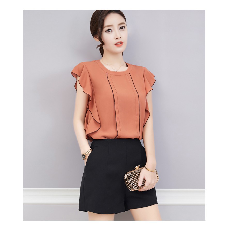 Áo Kiểu Nữ Ngắn Tay Bèo Lá xéo bên Xinh Xắn