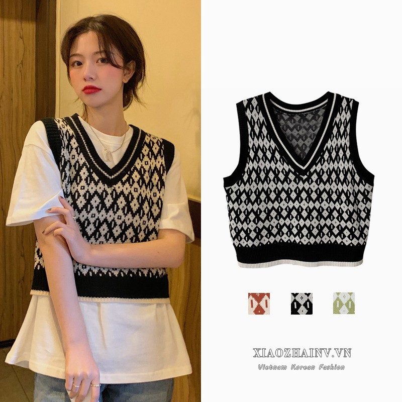 Xiaozhainv Áo Gile Không Tay Cổ Chữ V Dáng Rộng Phong Cách Hàn Quốc Cho Nữ free ship