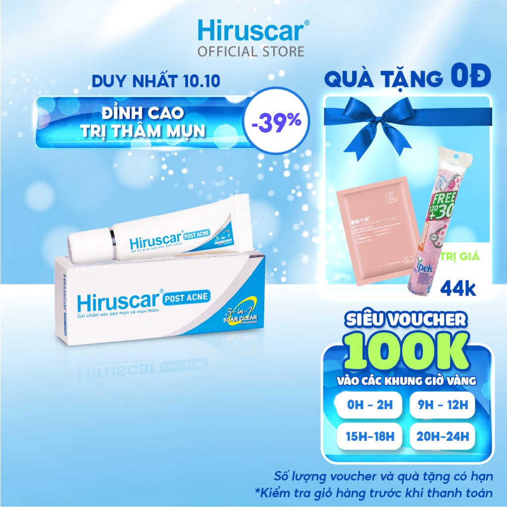 Gel làm mờ sẹo mụn và thâm mụn Hiruscar Post Acne 5g free ship